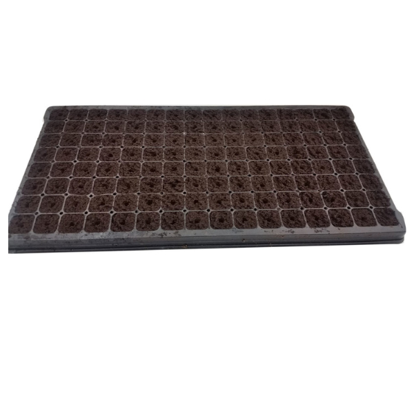 These seedling trays are designed to germinate a wide variety of greens such as lettuces, kales, chards, mustard, collards, and herbs. Their compact size fits perfectly in the raft boards, towers, and all media beds. The plugs are made with a combination of coco coir, peat, and a cellulose binder that ensures the plug stays together around the roots through the point of harvest. Seedlings grown in these plugs have a high germination rate, good growth rates, and don’t require any pH adjustment. They are also compostable making them environmentally friendly. 6mm dibble on top of each plug makes seeding a quick, easy process.